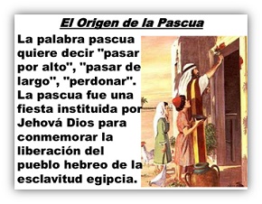 “La Pascua, por tanto, es una celebración de recordación judía, nada más. Su carácter comprende el significado de la liberación de la dura servidumbre de la esclavitud en Egipto, donde estuvieron cautivos por 400 años. No tiene nada que ver con la falsa fiesta que celebran otros cultos no judíos, llenos de ceremonial sin sentido — como la llamada Semana Santa: que a medida que avanzan los días "sagrados", prosperan asimismo los festejos colmados de idolatría. Este nombre, idolatría, viene del griego idolom: imagen y latría: adoración. Indicando al mismo tiempo, dicho vocablo, un culto tributado a númenes falsos y a un culto dado a imágenes; incluso del verdadero Dios” (Diccionario de Controversia, pág. 206ss). Éstos se guardan de no comer carne, reemplazándola por el permitido consumo de pescado (negocio de los pescadores); y así los huevos de chocolate, roscas de pascua, empanadas de vigilia (otro negociado), viajes de paseo (negociado también), etc.