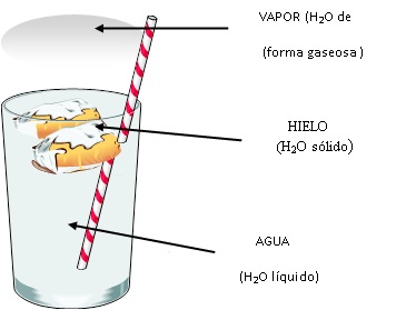 Como se ve, hay una esencia de agua (H2O) existiendo dentro de tres fases distintas. Cada fase puede existir aparte, o con alguna de ellas, o con todas juntas.